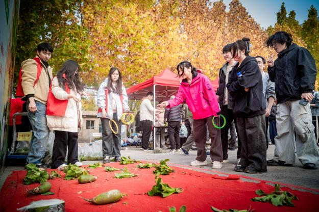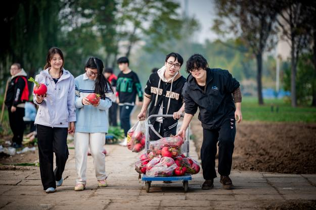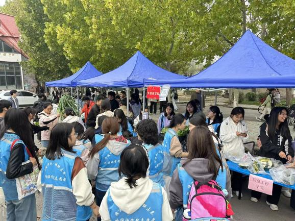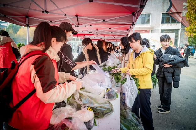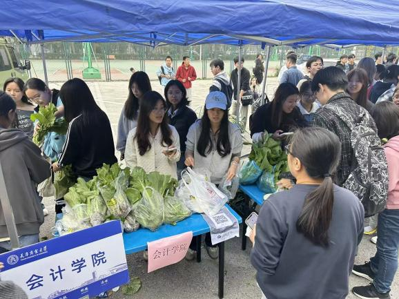 10月15日,系列活动第二场如期而至。本阶段在延续集体劳动传统的基础上,着重强化各学院的组织自主性与团队协作效能。从“星空农场”里的协同采摘、高效称重,到“蔬菜集市”上的摊位布置、创意营销,各个环节均由学生主导完成。活动提升了学生经费管理、成本核算等实务能力,让学生在完整的生产链条中理解劳动与价值创造的关系。