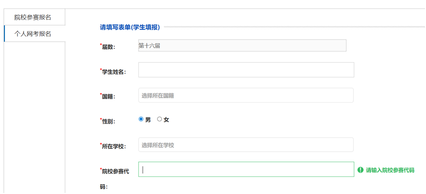 (五)院校参赛代码: