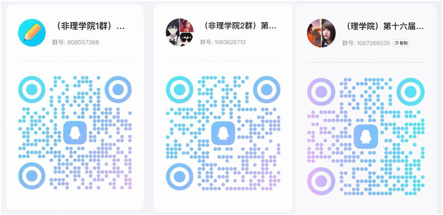 注:为方便收取网考费用,非理学院同学加入左一左二QQ群(仅选择一个群加入),理学院同学加入右一群。三个交流群具有同等作用。