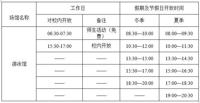 游泳馆开放时间