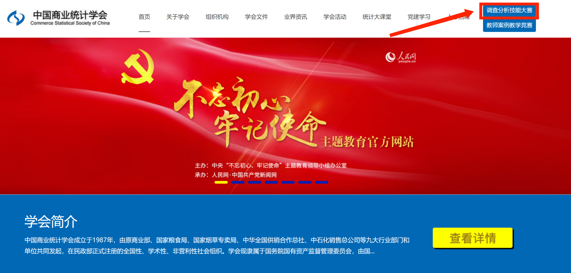 (二)点击页面右上角调查分析技能大赛,进入大赛专题页面。