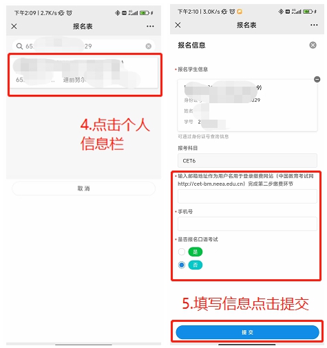2.进行资格验证后,学生对学校、院系、照片等信息进行核对,确认无误后进行报名及缴费,缴费成功后即确认为报名成功。