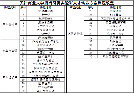 星空XK体育工商管理专业招商引资实验班的整体教学计划遵循星空XK体育本科教学计划设计的基本要求,对工商管理专业必修的各类课程不作改动,同时开设招商引资实务方向课程,并将专业综合(毕业)实习环节安排为在谷川联行有限公司进行的综合实训。