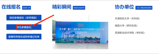 (三)下拉右侧滚动条至在线报名,点击学生参赛报名。