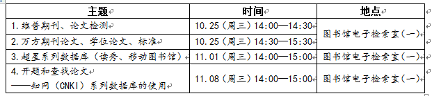撰写开题报告、论文写作、文献检索等的关键在于期刊全文类数据库的利用,此次宣传月期间,图书馆特聘请专业讲师为大家带来精彩的数据库使用讲座: