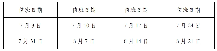 一、7月1日至8月27日期间,每周周三上午9:00至12:00安排专人值班,为校内外师生、校友及相关社会单位提供档案查询利用服务。8月28日起恢复正常上班时间。具体日期如下: