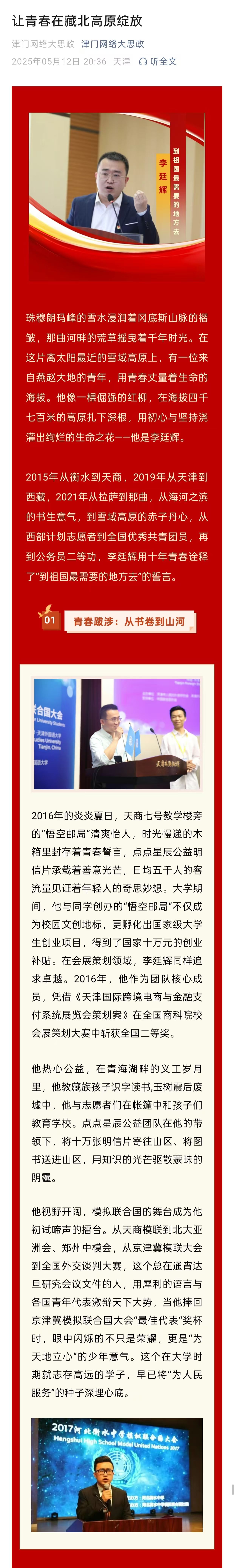 津门网络大思政微信公众号报道星空优秀校友李廷辉先进事迹
