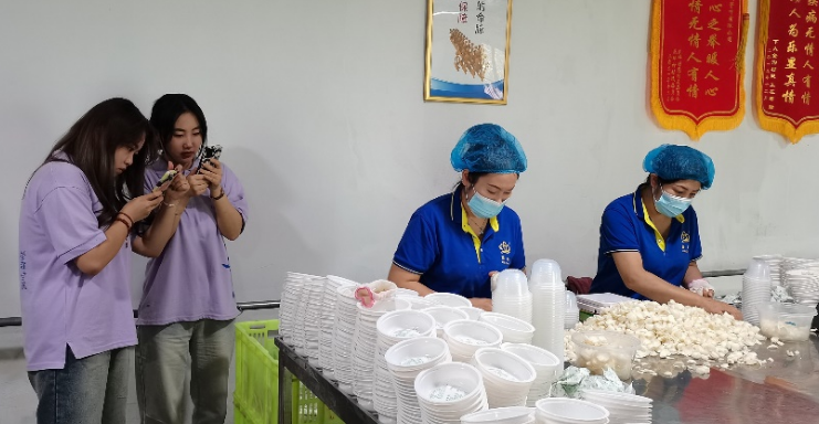 实践团成员在甘肃省兰州市西固区兰州菁叶商贸有限公司和甘肃百绿草业发展有限责任公司两家企业进行实地调研。在对两家企业产品特点、加工生产流程以及销售现状了解的基础上,在老师指导下,团队一方面通过现场直播方式为企业增加基础粉丝量,累计直播5次,浏览量近7000,观看人数超过5000人次,点赞率超过10000,直播推荐率达到74%;另一方面通过对产品特色、企业经营理念等内容进行凝练,并结合现场素材拍摄制作成短视频,将视频投放到公司的官方账号上,以扩大公司知名度,吸引更多潜在消费者。截至目前,实践团在两家公司账号上累计投放12条短视频,总浏览量近6.5万次。