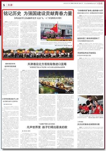 天津农学院当天举行“思源奋进 强我中华”为主题的思政育人活动,天津市学校思想政治理论课教师年度影响力人物、天津农学院思政课教师李月玲教授为大家带来纪念“九一八”事变爆发93周年的主题微思政课,引导同学们坚定理想信念、让红色基因代代传承。(天津日报记者 姜凝)