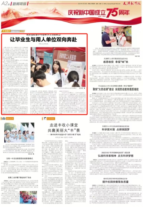 9月30日,《天津教育报》报道学校2025届毕业生秋季双选会暨2024天津市“海河英才”高校专场招聘活动。