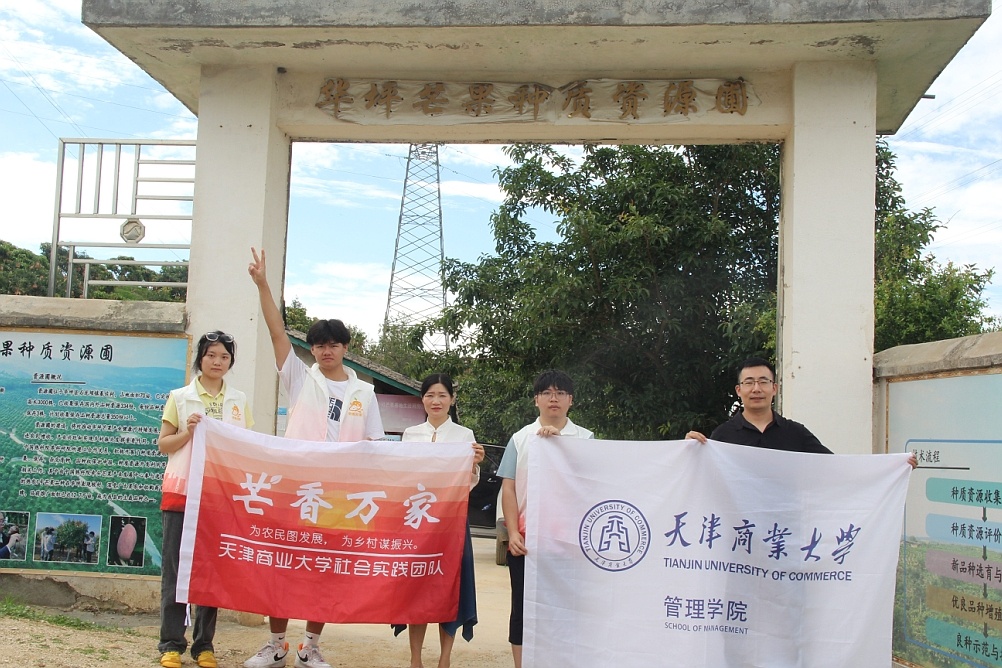 “芒香万家”实践团来到华坪果子山芒果基地,了解芒果种植、套袋等专业知识,在果农的指导下,实践团成员穿梭在芒果园里,帮助果农尽快采摘完成熟待销的果实。除帮助果农采摘之外,为提高芒果销售的宣传力度,实践团成员还拍摄制作了相关的宣传营销视频。实践团还走进当地龙头企业丽江华坪金芒果生态开发有限公司开展产学研交流活动。通过参观芒果深加工车间,详细了解生产工艺和产能,在提高效率、改进流程等方面提出初步建议,双方还签署了合作意向书。