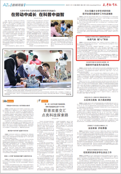 该校党委学工部主要负责人马静表示,学校始终高度重视学生心理健康工作,不断创新心理育人活动形式,拓宽心理育人渠道。近年来,学校不断加强心理育人师资队伍建设,擦亮学生朋辈心理互助品牌,有效提升学生心理健康水平。今后,学校将进一步加大心理健康工作力度,多措并举为学生心理健康保健护航。(津云新闻记者 段玮 天津日报记者 姜凝)