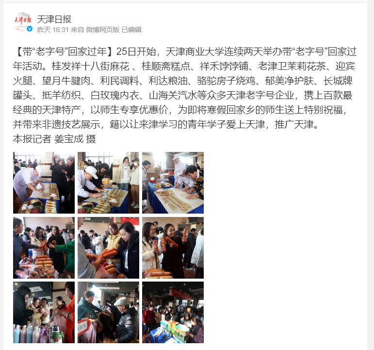 该校马克思主义学院中国化23级研究生郭宏悦表示:“这次‘带老字号回家过年’活动让我们可以近距离接触到老字号企业,不出校园就可以把老字号特产带回家,与亲戚朋友一起分享。通过参与这次活动,让我更加真切地感觉到600多年津门的历史文化底蕴,更加喜爱我所求学的城市。”