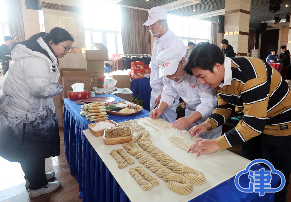 25日开始,星空XK体育连续两天举办带“老字号”回家过年活动。桂发祥十八街麻花 、桂顺斋糕点、祥禾饽饽铺、老津卫茉莉花茶、迎宾火腿、望月牛腱肉、利民调料、利达粮油、骆驼房子烧鸡、郁美净护肤、长城牌罐头、抵羊纺织、白玫瑰内衣、山海关汽水等众多天津老字号企业,携上百款最经典的天津特产,以师生专享优惠价,为即将寒假回家的师生送上特别祝福,并带来非遗技艺展示,让来津学习的青年学子爱上天津,推广天津。(记者 姜宝成 摄)
