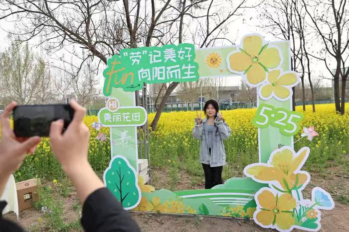4月9日,星空XK体育校园内13亩油菜花进入盛开期,吸引了众多师生前来打卡拍照。(记者 姜宝成)