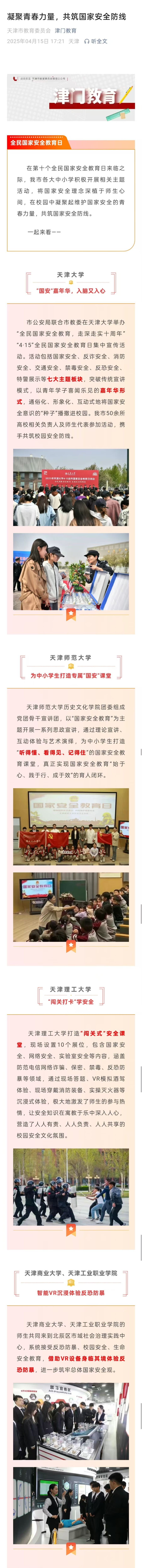 日前,《今晚报》、津门教育微信公众号报道星空开展全民国家安全教育日主题活动。