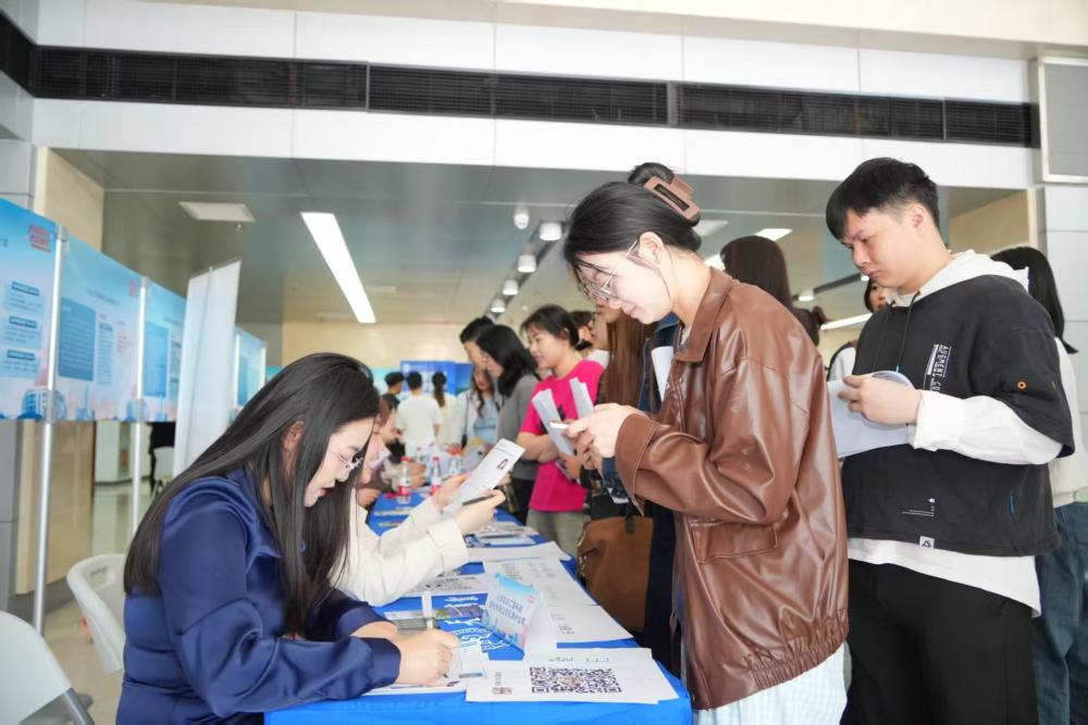 现场气氛高涨、人潮涌动,学生们穿梭于各个展位之间,寻觅心仪岗位,积极与企业交流沟通。44家校友企业精心筹备、热情参与,带来近600个优质招聘岗位,招聘岗位涵盖财经、管理、机械制造等多个行业领域,为毕业生提供了广阔的就业选择空间。同时还依托校友企业的直播基地开展线上带岗。线上线下参会学生900余人,现场投递简历1822份。