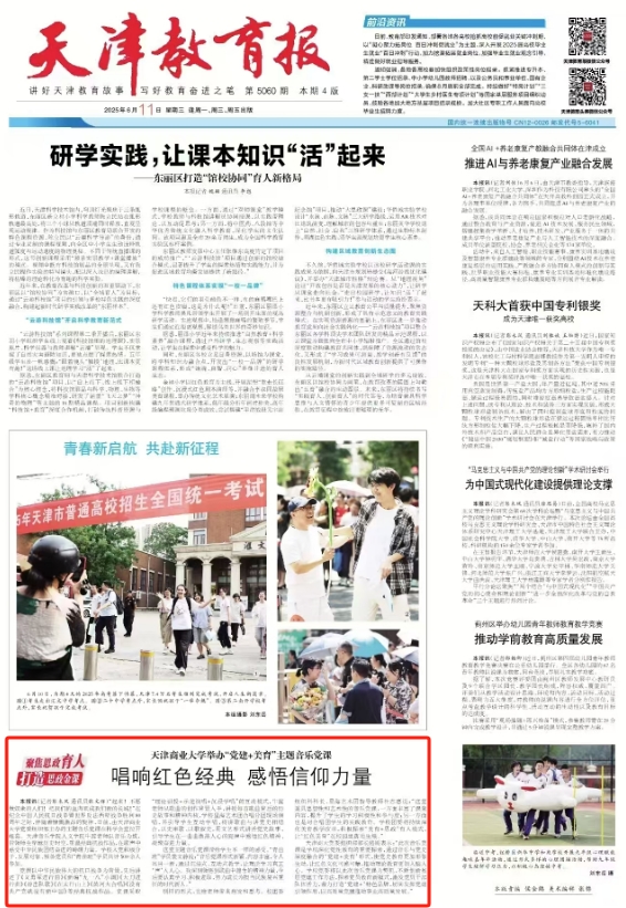 6月11日,《天津教育报》报道学校举办“党建+美育”主题音乐党课。