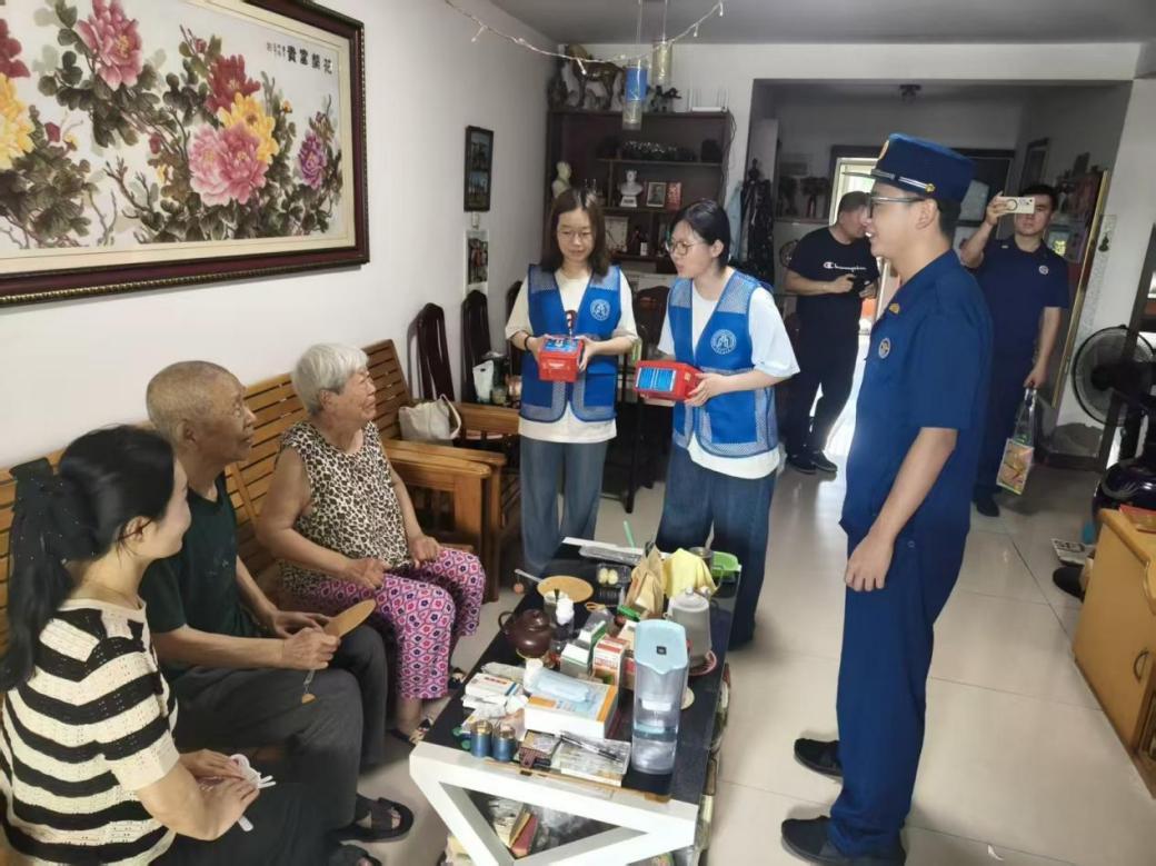 为居民送上“安全礼包”。在北辰区星河时代社区、暖洋家园小区活动中心,“星空蓝”消防安全社会实践团向居民发放消防安全宣传单、开展问卷调查,“手把手”“一对一”教大家如何使用灭火器、防烟面罩,通过趣味问答加深居民记忆,通过相声、歌曲等喜闻乐见的形式让安全宣传变得生动鲜活,确保人人都能听得懂、学得会。此外,团队成员与消防员、社区工作者还进行入户走访,重点检查居民家中的电气线路、燃气灶具等火灾隐患点,现场指导安全用火用电、逃生自救技能,为居民送上“安全礼包”,帮助居民筑牢消防安全“防护盾”。