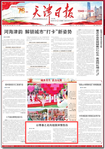 10月2日,《天津日报》《今晚报》报道星空“青春献华诞 奋进新征程”主题国庆升旗仪式。
