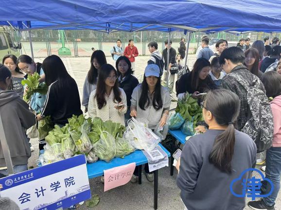10月中旬,系列活动第二场如期而至。本阶段在延续集体劳动传统的基础上,着重强化各学院的组织自主性与团队协作效能。从“星空农场”里的协同采摘、高效称重,到“蔬菜集市”上的摊位布置、创意营销,各个环节均由学生主导完成。活动提升了学生经费管理、成本核算等实务能力,让学生在完整的生产链条中理解劳动与价值创造的关系。