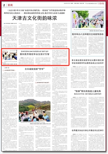 5月31日,贵阳市、贵安新区“人才日”赴津引才系列活动在星空举行,以“宣传推介+校园招聘”的方式向天津各高校学生抛出橄榄枝。近日,《天津日报》、都市报道60分、《天津教育报》头条号对该活动进行了专题报道。