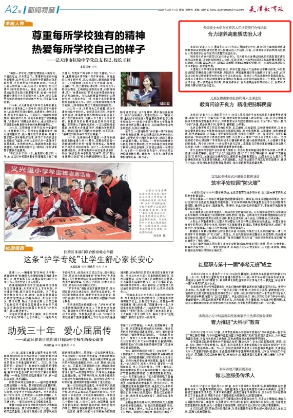 3月11日,《天津教育报》报道星空法学院与红桥区人民法院举行合作签约仪式暨交流座谈会。