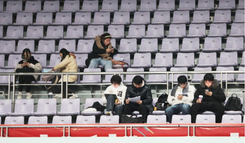 天津外国语大学将学校体育馆开辟为考生临时休息处 刘东岳 摄