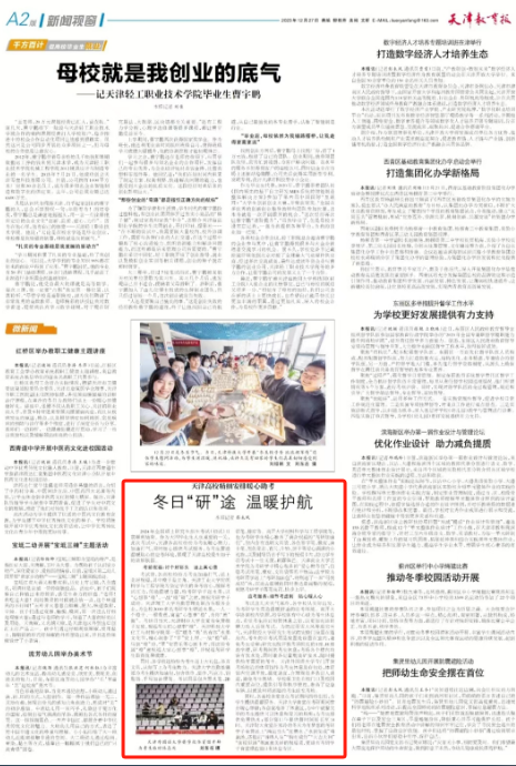 12月27日,《天津教育报》报道学校精细安排助力学生研究生考试。12月28日,学习强国天津学习平台也进行了专题报道。
