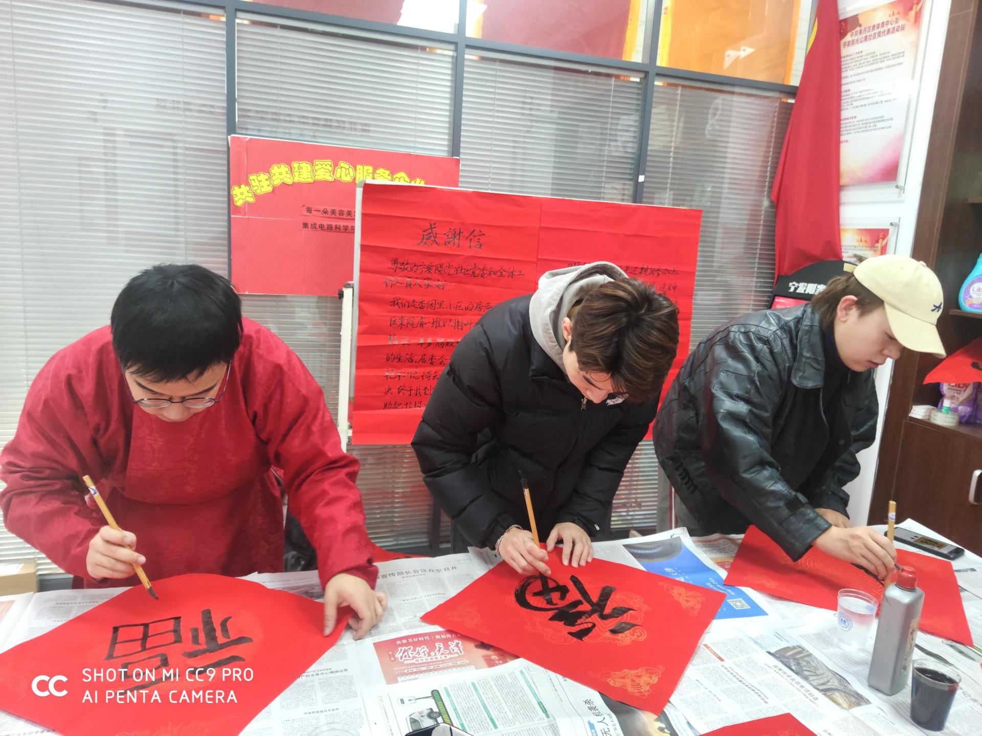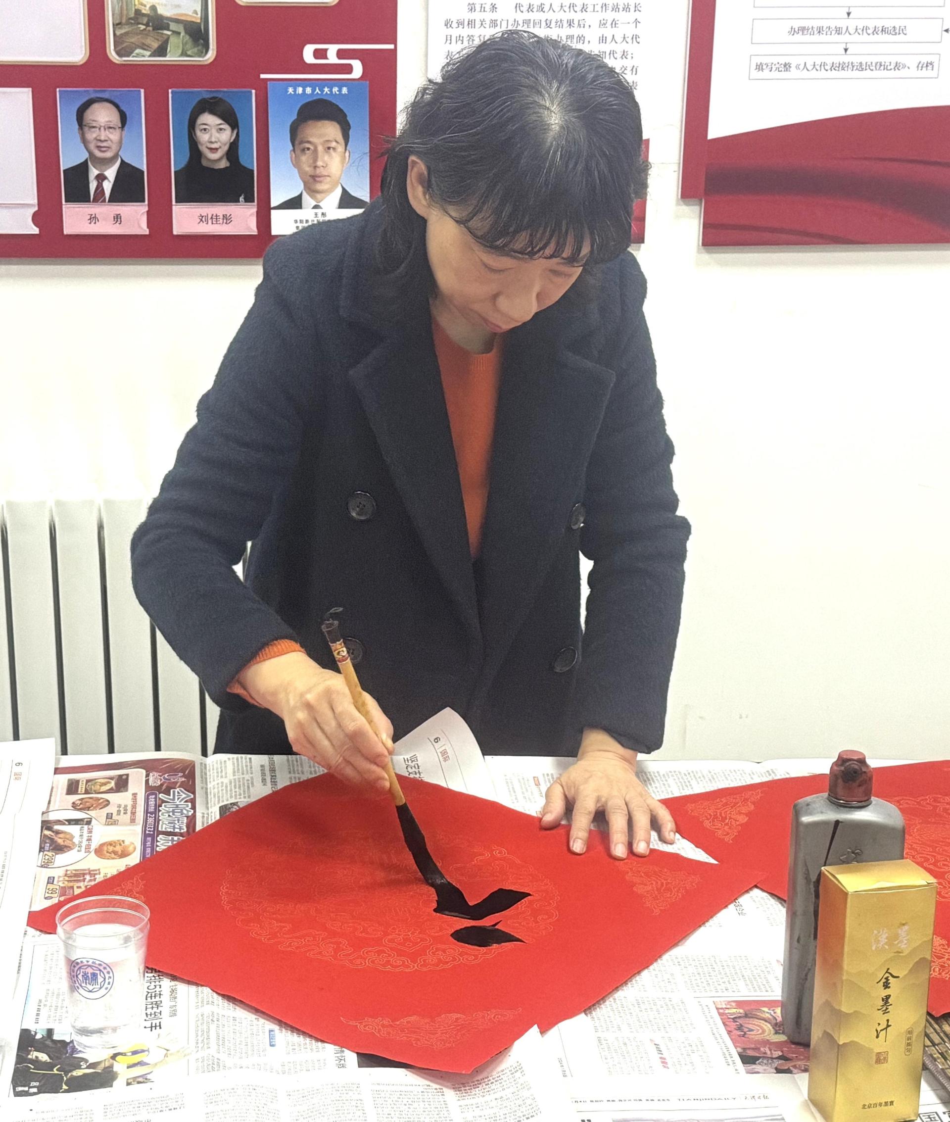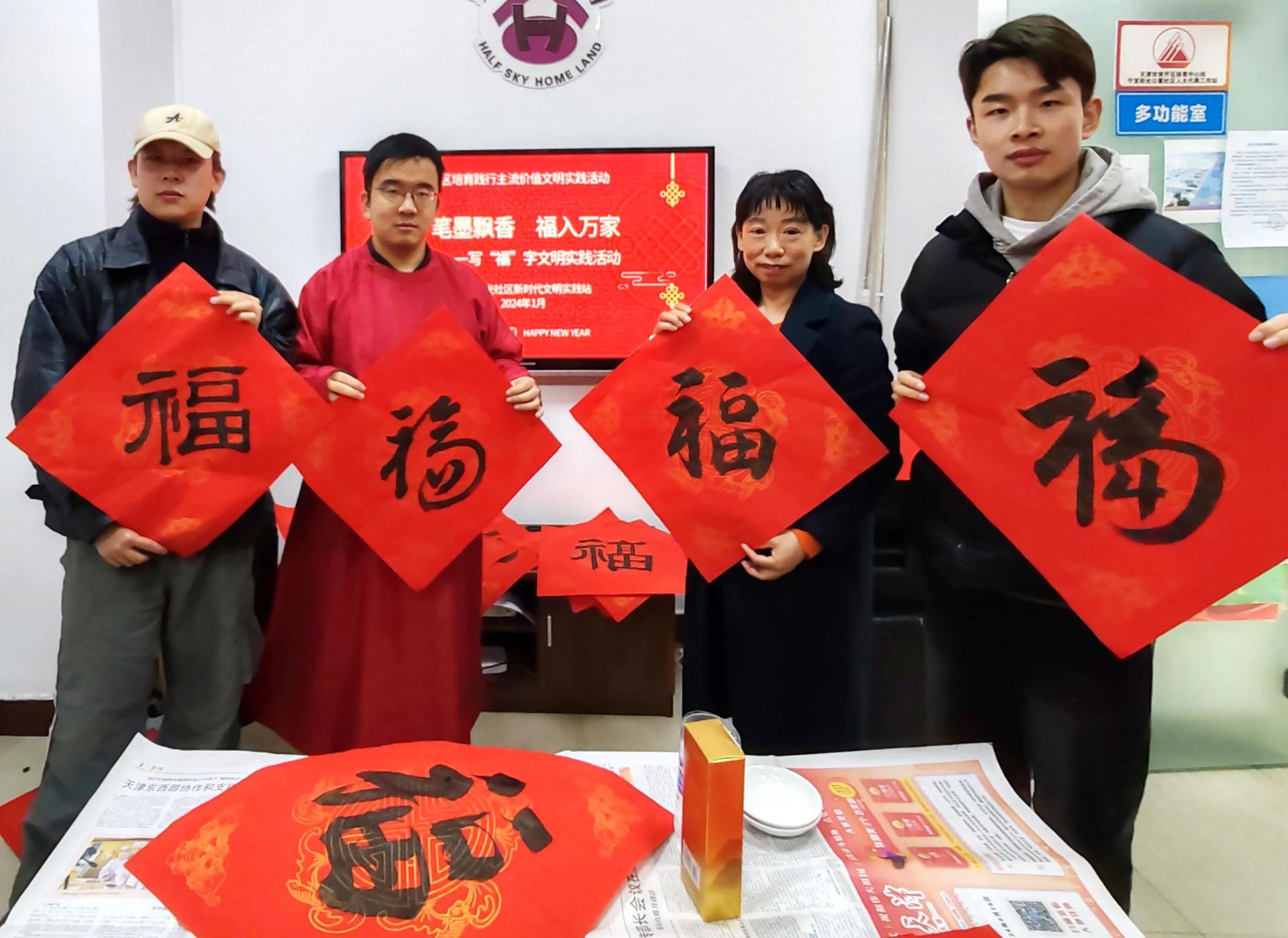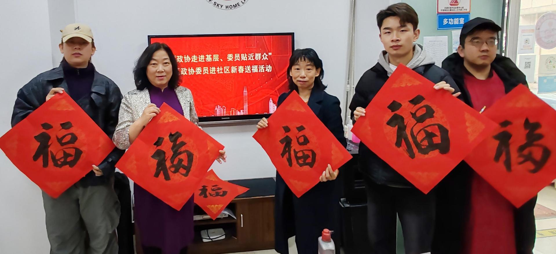 活动中,居民和政协委员欢聚一堂,一起写“福”字,寄托大家对新年的美好祝愿。政协委员庄雪阳、高桂鸿等现场为社区居民书写了数十个大红福字。庄雪阳委员还带领星空XK体育艺术学院的学生参与了此次迎春送福活动。
