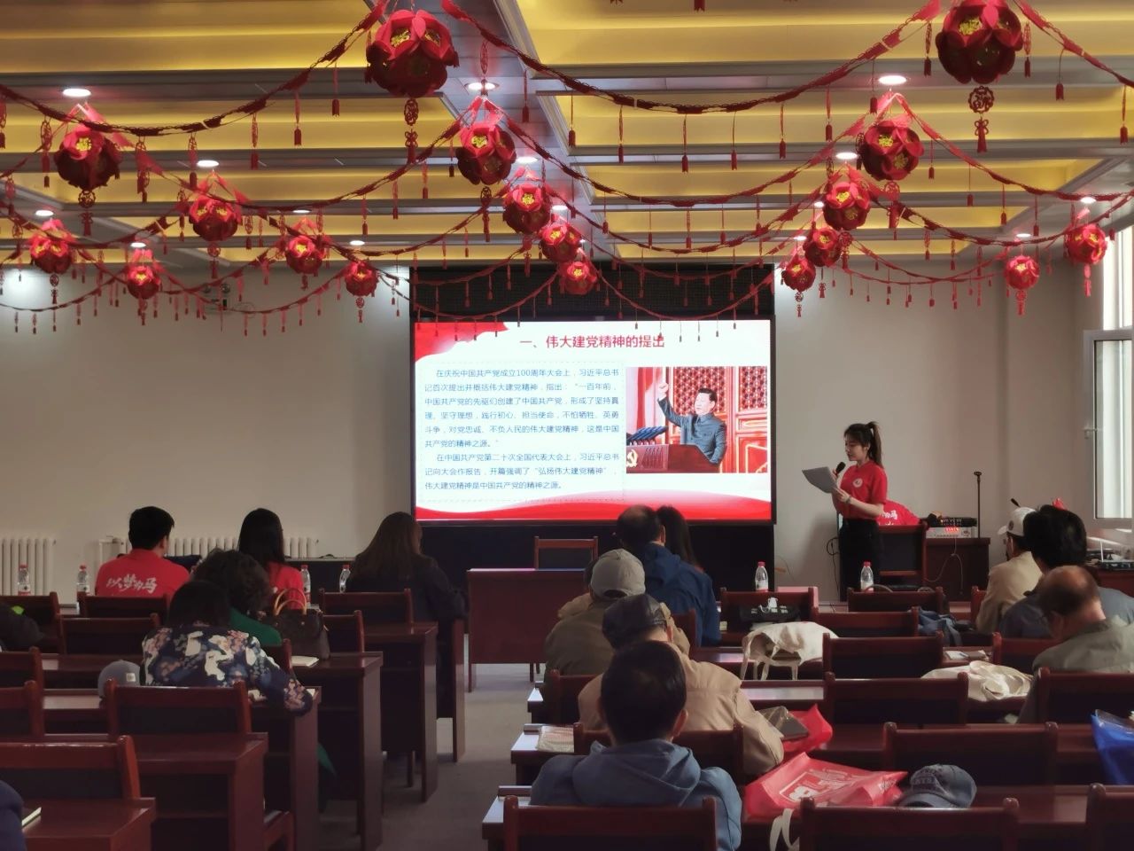 同时,宣讲团走出校园,开展“订单式”和“菜单式”宣讲。在北辰区瞰景园社区,根据社区定制的题目,个性化设计宣讲内容、打磨宣讲课件,开展题为《弘扬伟大建党精神奏响青春奋进乐章》宣讲,宣讲团成员王宇辰以生动的事例、饱满的情感,追溯革命先烈的英勇事迹,分享和平年代无私奉献的感人故事,赢得了在场听众的阵阵掌声。
