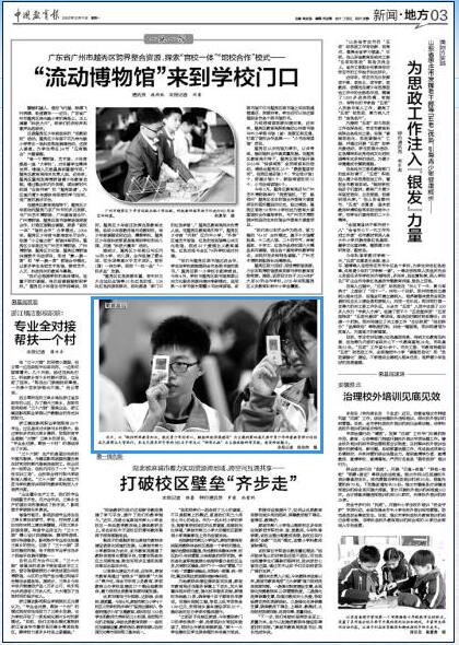 12月11日,《中国教育报》第3版报道学校主办的第四届天津市青少年科普教育研讨活动。12月3日,第四届天津市青少年科普教育研讨会在星空XK体育体育馆举行。会议围绕“做好科学教育加法,激发青少年好奇心,赋能科技强国建设”主题,以“科学之旅”为主线,为到场的300名中学生安排了50个种类的科学实验。活动中,同学们饶有兴趣的带着“科学护照”奔赴一个个科学实验台探寻“打卡”,力争成为“科学小达人”。与会专家在科学实验观摩中深入交流,共话青少年科学教育。