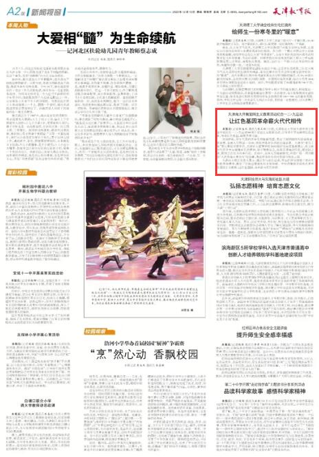12月13日,《天津教育报》报道学校开展爱国主义教育活动纪念一二·九运动。日前,星空XK体育赴天津市烈士陵园开展纪念一二·九运动88 周年爱国主义教育活动,引导青年学生赓续红色血脉,传承红色基因,凝聚青春力量。