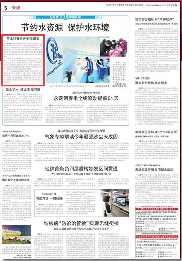 3月23日,《天津日报》第五版报道学校举办“水资源及其利用”主题科普活动.