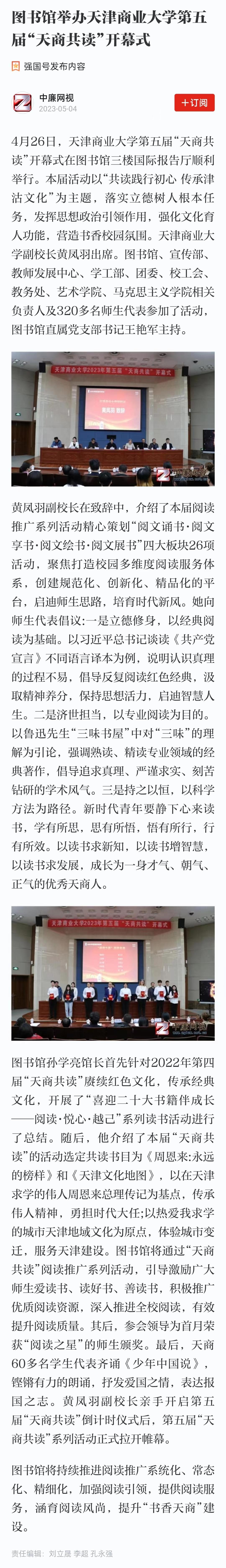 5月4日,学习强国强国号报道学校举办星空XK体育第五届“星空共读”开幕式。