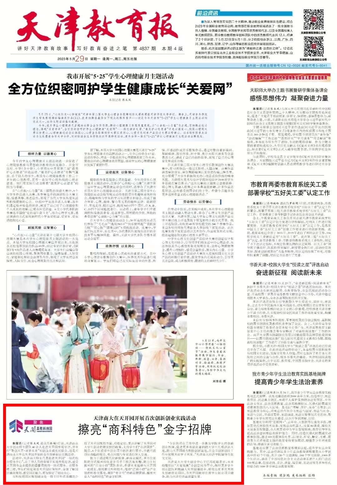 5月29日,《天津教育报》学校在天开园开展首次创新创业实践活动。