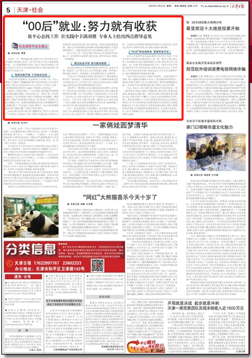 7月24日,《天津日报》、津云报道学校毕业生成功求职经历。