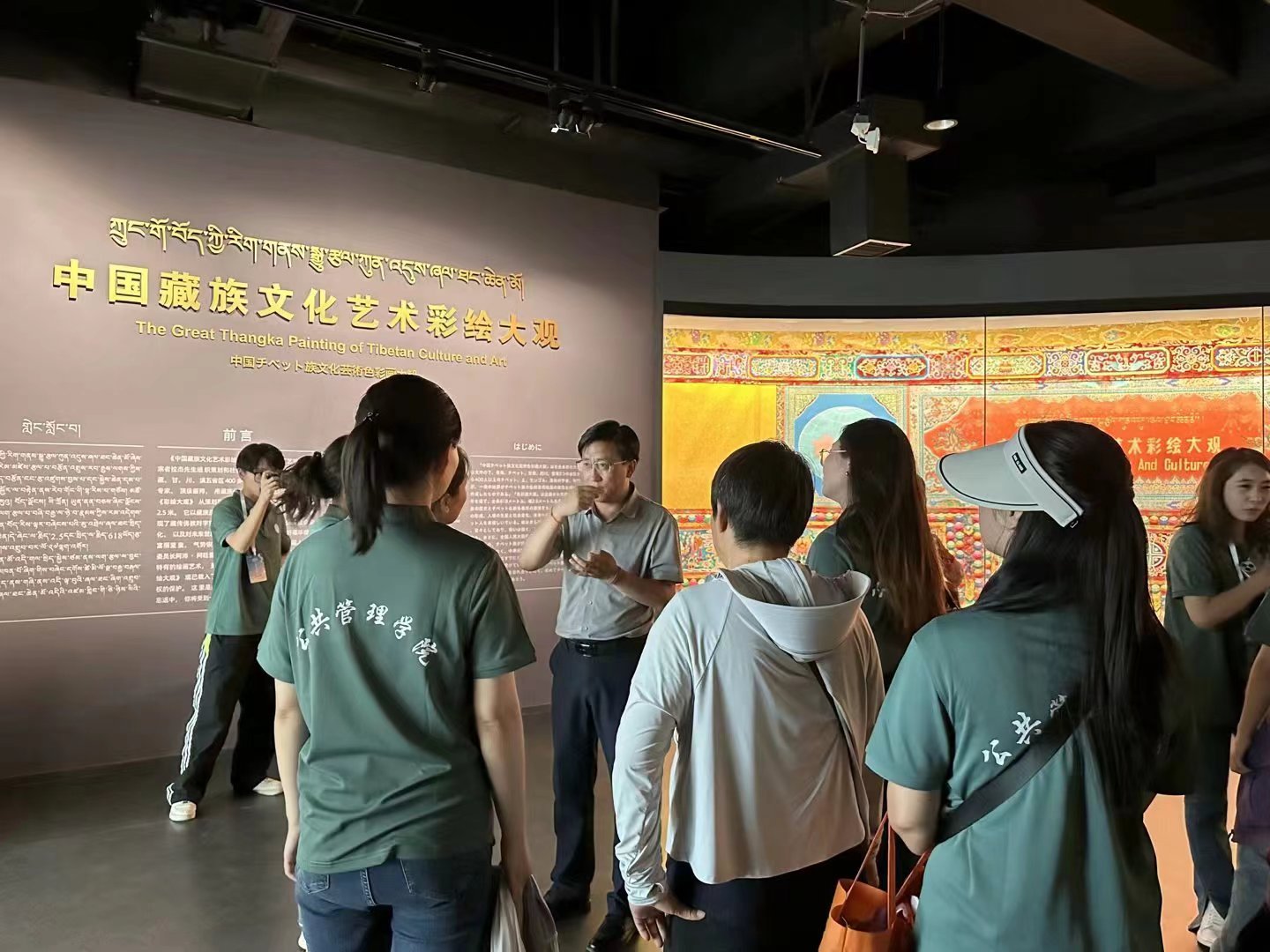 实践团在中国民族建筑研究会副秘书长、常务理事马扎·索南周扎教授的带领下,参观了青海省藏文化博物馆。马扎·索南周扎教授详细讲解了镇馆之宝——中国藏族文化艺术彩绘大观,队员们学习了藏族的历史渊源、宗教传承、文化艺术、医药卫生、天文地理、神话传说、生活习俗,以及民族团结、藏区繁荣等内容,深切感知了藏族地区的风土人情,增强了队员们的文化认同感与文化自信。