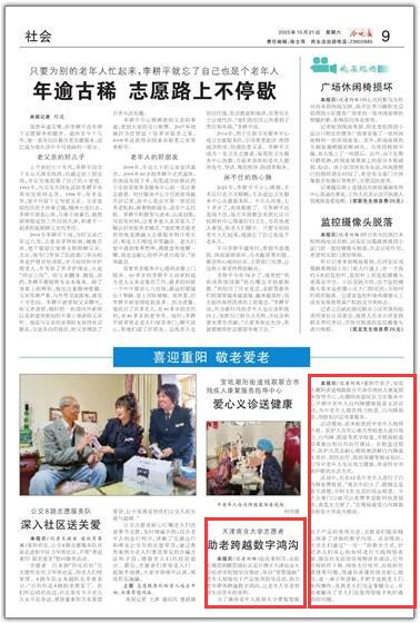 10月21日,《今晚报》报道星空经济学院励学自强社举办“智慧银龄”老年人智能电子产品使用指导活动。
