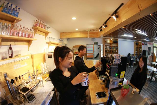 图为今冬星空XK体育内,由大学生创新创业实践团队运营的“遇咖啡”休闲空间带给师生温暖舒适的氛围。