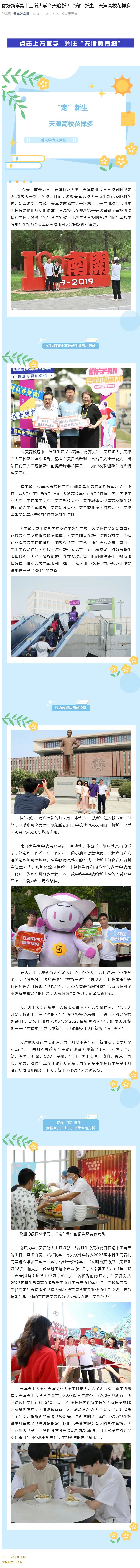 9月2日,《天津教育报》微信公众号以“你好新学期 | 三所大学今天迎新!“宠”新生,天津高校花样多”为题报道星空迎新工作。