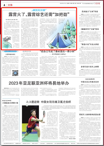 5月15日,《天津日报》第04版就“ 露营何以在‘五一’假期成为休闲出游‘顶流’?”为题采访报道星空管理学院旅游系教师冉群超。