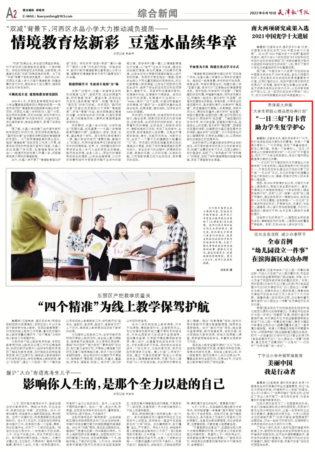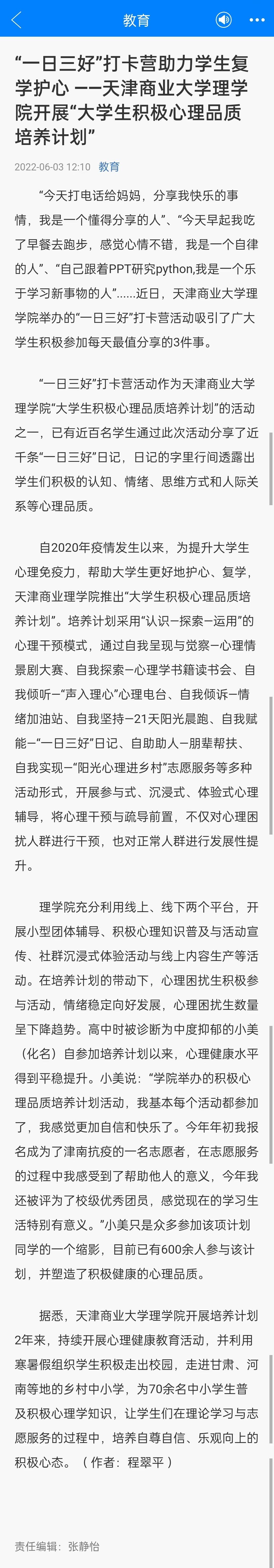 6月3日,《天津日报》微博、津云客户端报道星空理学院举办“一日三好”打卡营活动。6月10日,《天津教育报》A2版也进行了专题报道。