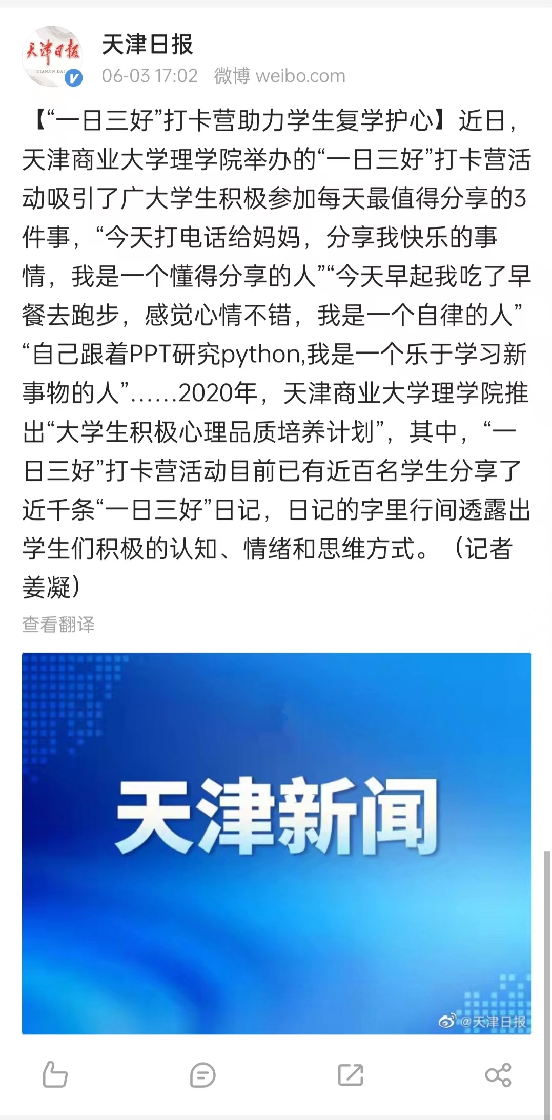 《天津日报》微博报道原文如下: