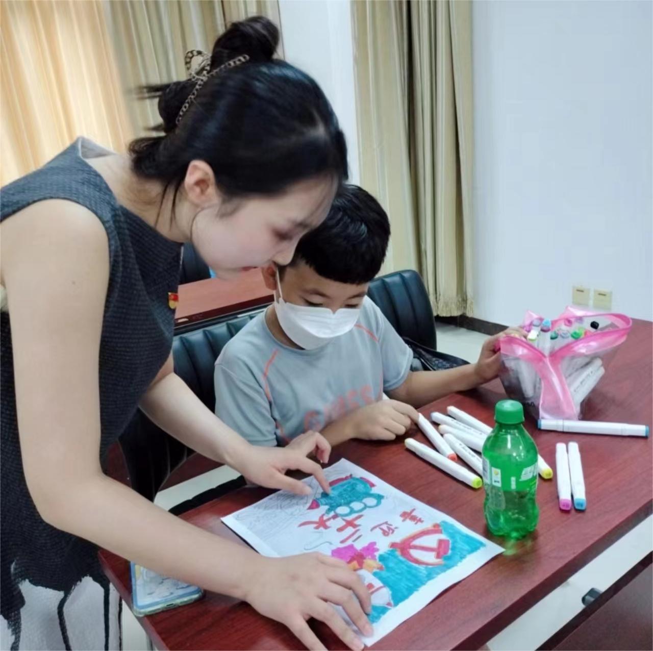 她从“青年兴则国家兴,青年强则国家强”的角度,激发广大青少年立牢为国为民之志,要怀着一份赤子的情怀广泛学习党史,把爱国之情、报国之志化为实际行动,在新时代贡献自己的力量。学生和家长在一幅幅精美的绘画和剪纸作品中,重温了红船精神、西柏坡精神,又听到了雷锋的故事,更是看到了3年来一线医务工作者、社区工作者、志愿者们的抗疫防疫的画面,深刻体会到身边榜样的力量。讲课结束后,毕天叆现场指导孩子们进行“喜迎党的二十大”绘画作品。