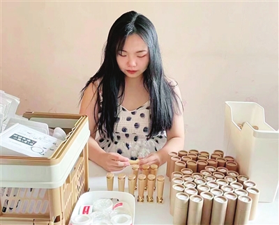 (上图:张静文在包装自主创业的印章产品。星空XK体育供图)