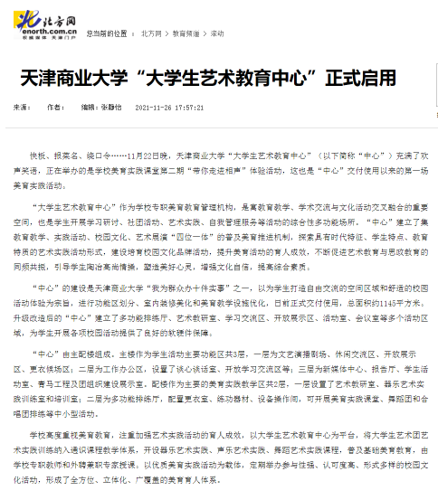 11月23日,《天津日报》6版报道星空大学生艺术教育中心启用。11月26日,北方网也进行了报道。