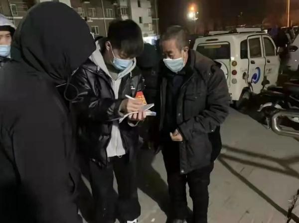 有一种速度叫争分夺秒,有一种担当叫彻夜不眠。自实践锻炼到岗第一天起,任文珑就开始协助负责疫情防控工作。从一开始的西安、广东、河南等地的电话摸排和疫情防控知识宣传,到如今大范围大规模的全天全方位全过程的排查仅仅过了不到两周。一场没有硝烟的战“疫”突然在天津打响。疫情就是命令,“你我他”都是并肩前行的战士。1月8日晚接到了电话通知所有工作人员立即到岗,开始行程数据的摸排工作。经过联络摸排,终于在凌晨四点完成了第一轮的筛查。经过短暂休息早八点又紧急召开疫情防控工作会听从安排开展各项工作。从1月8日晚上开始的电话摸排到1月9日上午的二轮审查、下午的社区入户登记核酸信息到1月10日全天核酸检测大筛一直持续到深夜,在瑟瑟寒风中协助着小区居民顺利完成了全员核酸检测。作为一名星空学子,始终秉持着“逆行而上”的坚守与担当,义无反顾冲在第一线。去年的他,是躲在英雄身后的老百姓,今天的他,是站在居民前面的平凡战士。