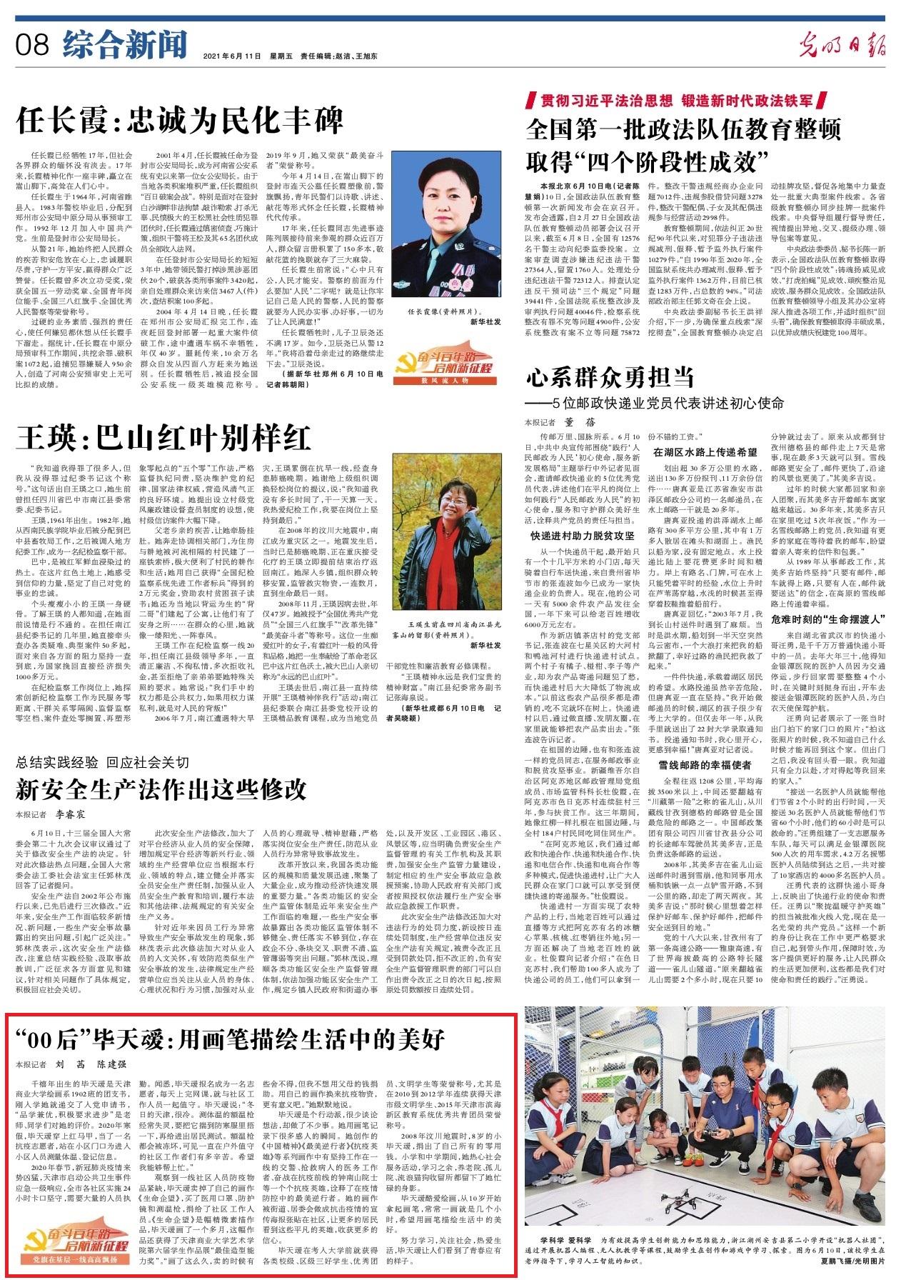 6月11日,《光明日报》第8版“奋斗百年路启航新征程·党旗在基层一线高高飘扬”栏目报道星空艺术学院学生新党员毕天叆的优秀事迹。今日头条等网络媒体平台同步转发。