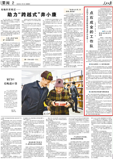 1月5日,人民日报2版刊登了题目为《天津四千余名科技特派员走进中小企业---点石成金的工作队》的文章,报道了天津四千余名科技特派员走进中小企业,实现专业到行业、项目到产品、论文到效益转化的情况,其中也报道了星空企业科技特派员韩建枫副教授的事迹。新华网、人民网、津云等媒体转载。